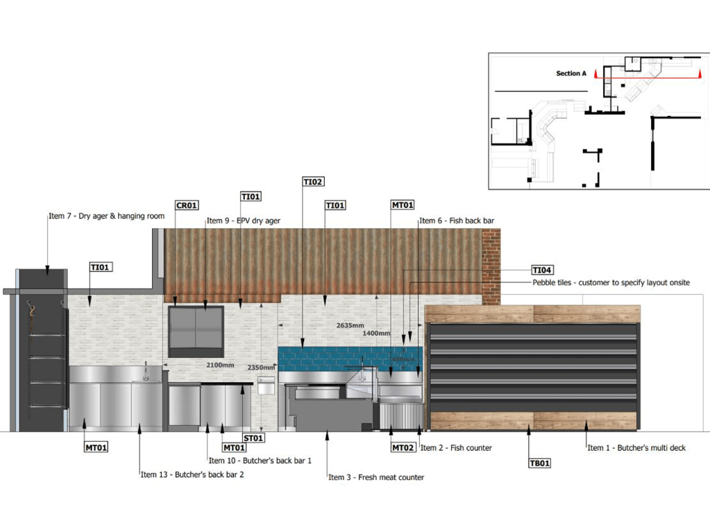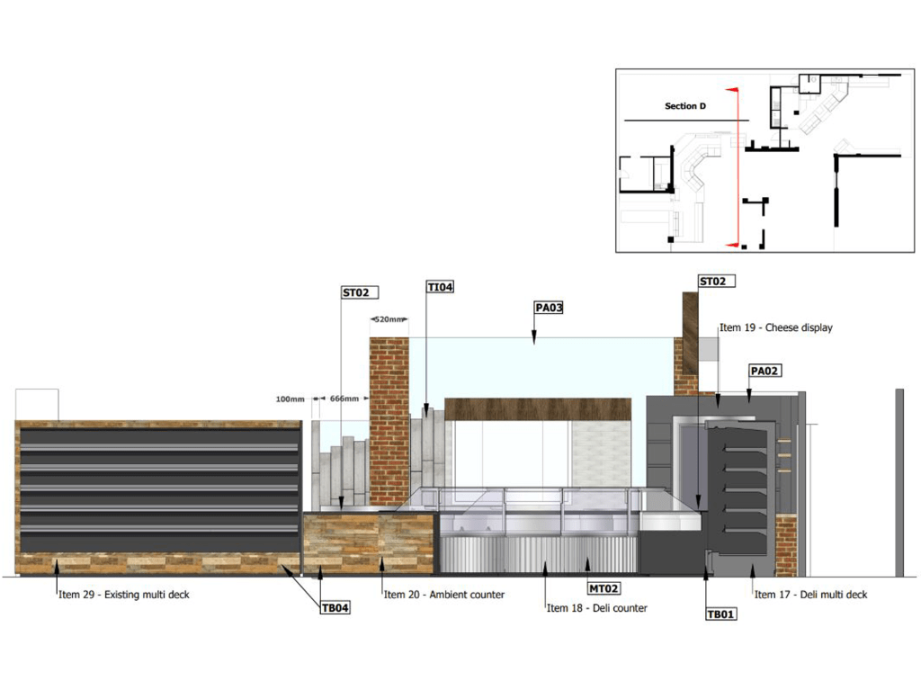 A well established and popular Farm Shop in Market Harborough was in much need of an update after spending years increasing their fresh produce offer, opening a restaurant and expanding their shop to the limits of what their building could fit. We provided spacial planning advice and drawings, 3D visuals, bespoke equipment to showcase their fresh produce offer and project management to see heir vision come to fruition.