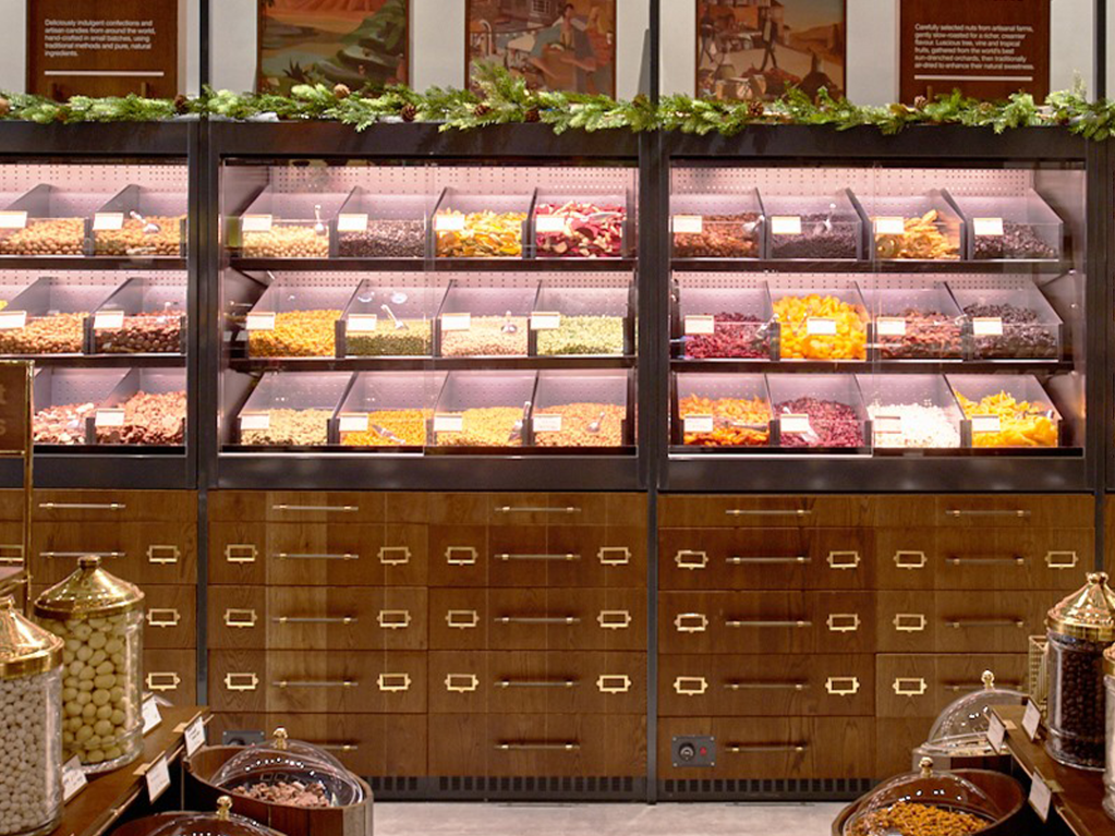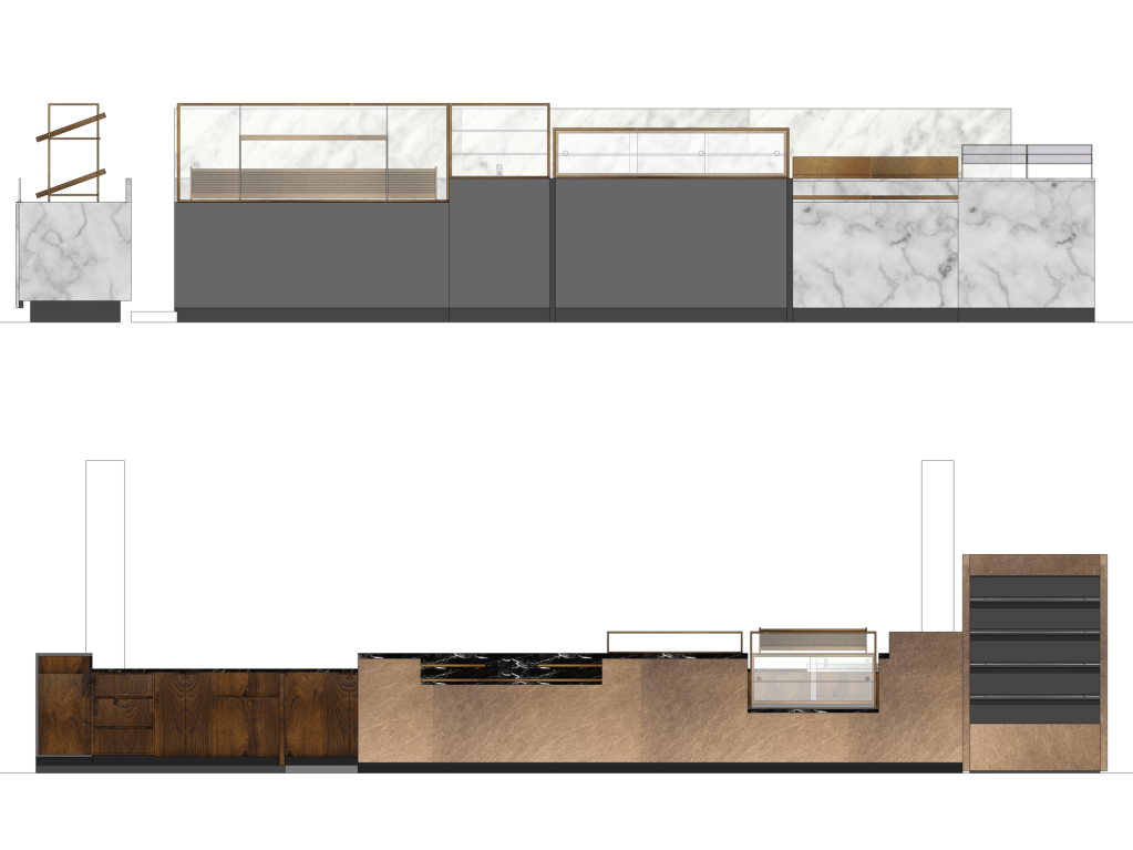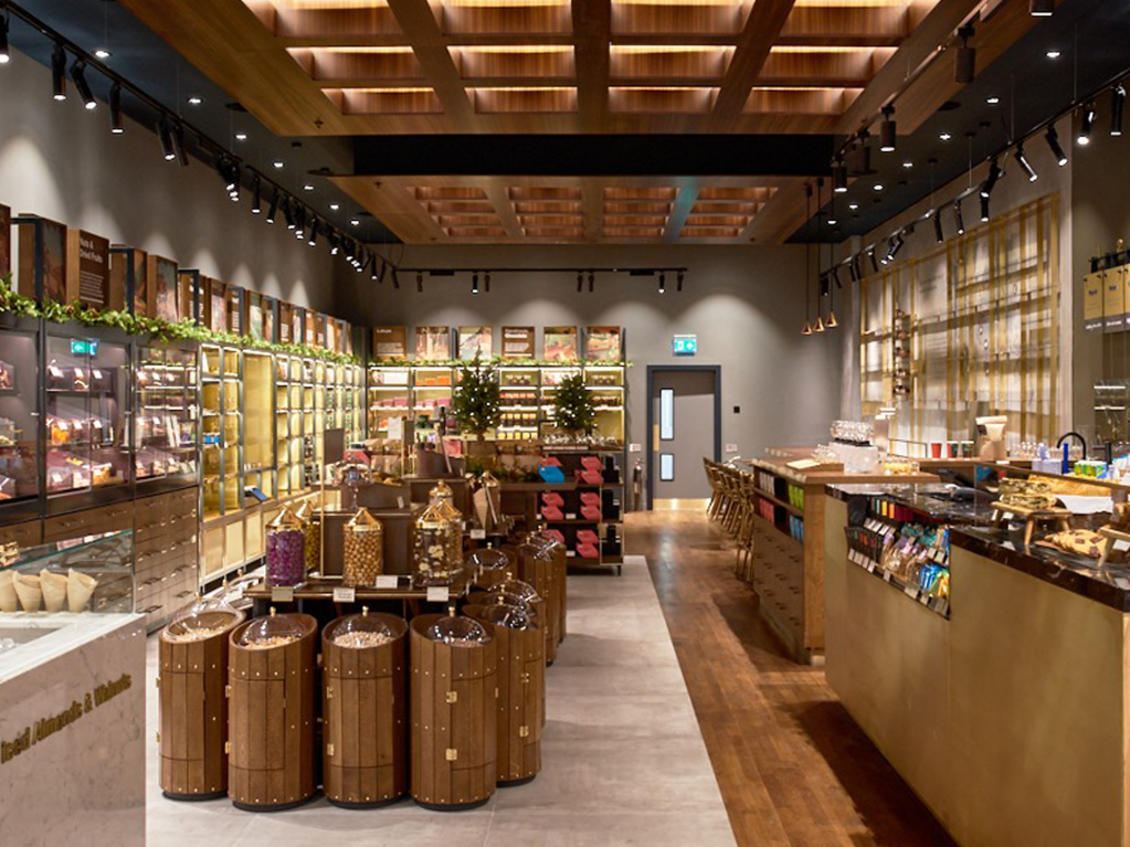 This unique project provided the opportunity to discover brand new opportunities for displaying Turkish chocolate, treats, cakes and coffee. We utilised dark wood, Carerra marble, brass and bronze for this high end sweets shop in London. We worked closely with the customer’s project manager to create this unique retail and cafe space utilising specialist crafts people and shopfitters to achieve this one of a kind shop.